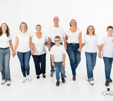 Nous capturons les moments importants de votre vie avec sensibilité et exigence. Dans notre studio à Cournon-d’Auvergne ou en extérieur, nous réalisons des portraits naturels, des images de famille sincères et des reportages de mariage élégants.